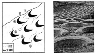 2、单选题 鱼鳞坑是为减少水土流失,在山坡上挖掘的交错排列、类似鱼鳞状的半圆型或月牙型土坑,它能够拦截地面径流,起到保持水土的作用,读图完成1—2题。