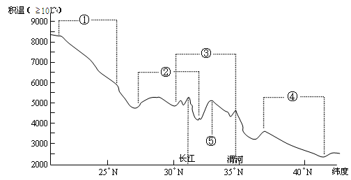 5、单选题 下图是沿110°E经线不同纬度日平均气温≥10℃的积温曲线图。读图,回答下列各题。