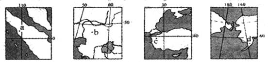 小题1:四幅图中位于亚洲与北美洲边界的图是:?(?)?