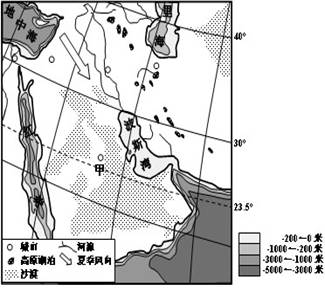 (3)分析波斯湾北部海域夏季易遭遇沙尘天气的自然原因。(6分)
