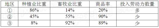 1.①地区的农业地域类型可能是2.与②地区农业地域类型相似的地区是3.提高③地区土地载畜量的合理措施是