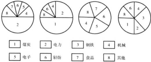 3、单选题 分析下列城市工业产值结构示意图,图序与地名排序相符的是( )