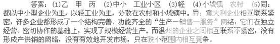(1)甲、乙、丙三个地区中,被称为“第三意大利”的是 ,传统工业区是 ,至今工业化尚未普及的是 。