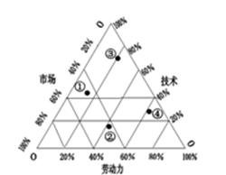 点评:本题借助三角形统计图的判读考查影响工业布局的主导区位因素,难度较大。其中三角形统计图的判读是解答本题的关键。