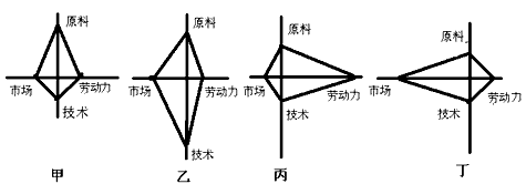 3、单选题 下图是工业区位选择模式图,其中线段长短表示影响程度大小。