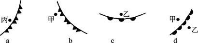 3、单选题 1.下列表示3月3日甲、乙、丙三地所处天气系统相对位置的四幅图中,正确的是