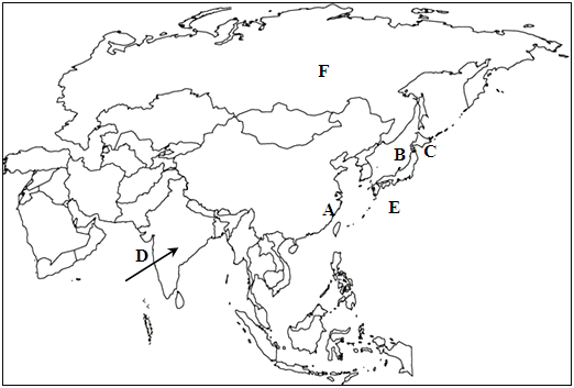 5、填空题 读亚洲地区图,完成下列各题。(12分)