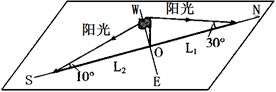 【小题1】仔细读图,该观测站在一天中两个不同时刻的太阳照射的方向为正南、正北方向,时间为当地的正午和子夜。该地正午太阳高度为30°,太阳从正南照射,说明该地位于北半球高纬度;该地午夜太阳高度为10°,太阳从正北照射。设该地的纬度为X°,直射点纬度为Y°,则,30°=90°-(X°- Y°);10°=(X°+ Y°)-90°。经过计算可知X°=80°;Y°=20°。答案选D。