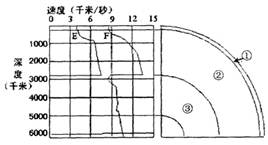1.图中①代表的是2.岩石圈位于3.当一次地震发生时,有关图中E、F两字母所代表的地震波的叙述正确的是