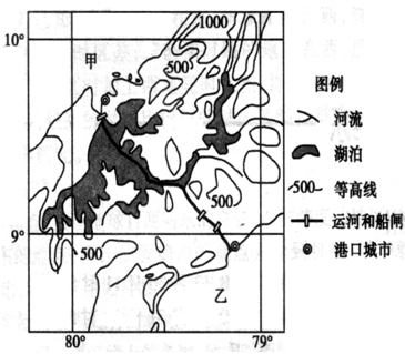 1.为发展旅游业,该区域内拟建一个大型海滨浴场,最佳位置应在2.图中甲城四周虚线范围内最适宜种植的是