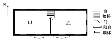 4、综合题 (9分)下面是大连(约39°N)某房地产公司开发的一梯两户式多层商品房平面示意图,读图,完成下列各题。