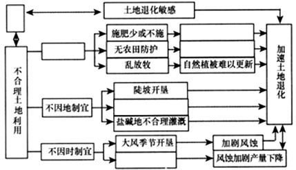 (3)选择下列恰当内容,完成"农牧交错地带土地退化过程框图"。(填字母)