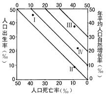 小题2:甲阶段人口自然增长率最高,说明此时人口增长速度最快,但数量并没有达到最大值;环境人口容量受资源、科技发展水平以及人们的生活和文化消费水平等影响最大,与人口数量关系不大;丙阶段由于老龄人口增加,人口死亡率可能上升;丁阶段虽然人口自然增长率很低,但由于人口出生率和死亡率都很高,人口老龄化问题不突出,社会养老负担不重。
