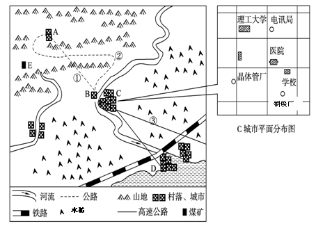 (2) 钢铁厂是本地区重要的支柱企业,其布局的有利区位条件有?