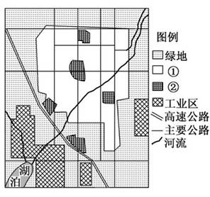 小题1:住宅区是城市最广泛的利用方式①的面积最大,应为住宅区;②位于市中心和交通干线两侧应为商业区。