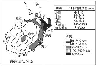2、单选题 2011年8月30日,持续强降水使海南省遭受了历史上罕见的洪涝灾害。读图,回答下列问题。