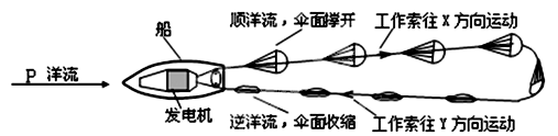 3、单选题 伞式洋流发电是通过“伞”带动工作索周而复始的运动,进而带动发电机运转发电。读某海域的伞式洋流发电站示意图完成下题