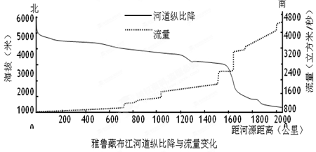①降水增多 ②汇入支流增多 ③冰川融水增多 ④湖泊补给增多 ⑤流域面积扩大2.雅鲁藏布江水能最丰富的河段约距河源