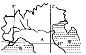 【小题1】据图可知:根据经纬网以及轮廓可以判断,图示国家为意大利,该国位于地中海沿岸,气候类型为地中海气候,该气候类型的特点是雨热不同期,降水在冬季较多,所以河流也在冬季进入汛期,所以本题D正确。