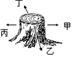(4)树木向阳一侧由于植物生长量大,故年轮线较为稀疏。我国一野外考察队在大兴安岭迷失了方向,考察队员通过观察树木年轮特征后,确定了南行线路应为图中的 方向(填正确选项字母)。(2分)