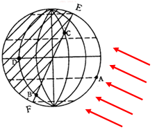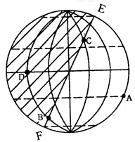4、填空题 读“太阳光照图”(阴影表示黑夜,非阴影表示白天),且此半球是东半球(即A点所在的经线为东经160度),回答下列问题。(20分)