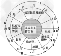 ①城市不断发展,土地买卖日益兴旺? ②政府限制农业的发展 ③全球变暖,不利于香港农业发展? ④农民进人市区寻找高收人工作 A.①② B.①④ C.②③ D.③④ 参考答案: 本题解析:本题考查我国的区域地理和读图分析能力。 本题难度:简单 5、单选题  下图为北半球某农场的工作历程(农事安排)示意图,读图完成1-2题。 参考答案:1、B 本题解析: 本题难度:简单 |