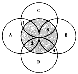 1、单选题  下图各圆中,A和B,C和D是并列关系,阴影圆和其他圆是交叉关系,完成1—2题。
