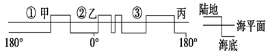4、单选题  下图所示为“23°26′S的海陆分布示意图”,读图回答下题。