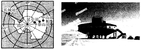 A.长城站濒临印度洋 B.中山站常年盛行东北风 C.泰山站与昆仑站相距约1300千米 D.昆仑站终年盛行下沉气流 |