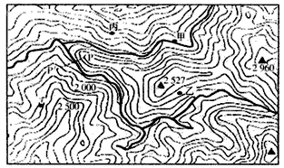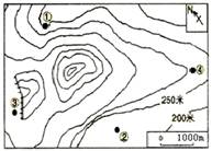 4、单选题  下图是某山区地形图,读图,回答1—2题。