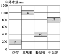 小题1:本题考查农业发展的条件。P地位于热带,降水少,不适合种植业的发展;Q地降水丰富,适合种植业的发展,不适合畜牧业的发展;M位于暖温带半湿润区和半干旱区的过渡地带,属于农牧交错地区,适合农牧结合发展;N地降水较多,适合发展种植业。所以本题选择C选项。