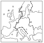 4、单选题 图1为欧洲部分地区略图,图中四条线是重要的地理界线。完成1~2题。