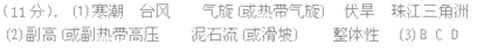 (2)A为暴雨洪涝多灾区,1981年形成于西太平洋上的?(填气压带)位置偏西、偏北,与北方来的冷空气相遇而成暴雨。受其影响,此地区还易形成?地质灾害。由此可以看出地理环境的?特点。(3分)