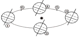 (4)在图中画出③位置时昼半球、夜半球的状况(用阴影部分表示夜半球)。