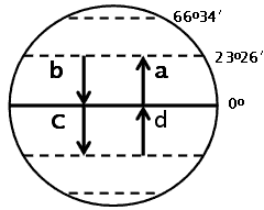 (6)当地球位于⑥位置时,太阳直射的位置正处于下图中的__________(a、b、c、d)段。