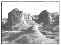 1.根据图示判断为风蚀城堡景观,故判断为风力侵蚀形成的地貌,主要位于我国西北干旱地区。