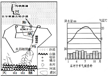 玛纳斯河流域开发示意图与石河子气候资料图。
