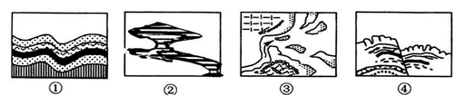 5、单选题 该图所示的地质构造或地貌景观中,主要由内力作用形成的是: ( )