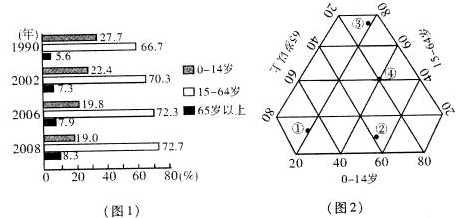 ①缓解人口结构性矛盾的长期影响?②解决男女比例失衡问题 ③保持合理的劳动力数量?④影响劳动力人口的职业构成 A.①②③ B.①②④ C.②③④ D.①③④ 3、单选题  下列人口增长模式与其地区分布的组合,正确的是(?) 4、单选题  读芬兰地区a、b、c、d4个时间段人口自然增长转变图,回答1—2题。 5、单选题  读某地区人口年龄构成变化图(图1)和某年人口年龄构成(图2),回答下列各题。 |