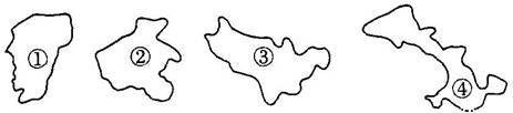 3、单选题  读下面四个省区轮廓图,回答题