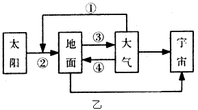 丹麦位置示意图(图甲)和大气受热过程图(图乙)