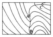 4、单选题 下图是一幅没有等高线注记的“局部地形图”,等高距为300米,AB是河段,当B点气温为15ºC时,则C点的气温是 ( )