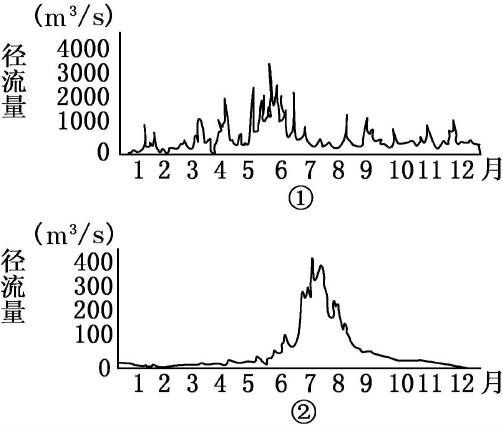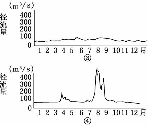 (1)青藏高原冰川广布,冰雪融水是河川径流的主要补给水源。读图,属于冰雪融水补给的是图?(填序号)。该类河流径流量的季节变化与?的季节变化基本一致。