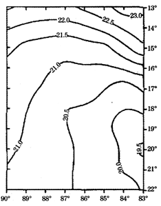 A.A、B循环? B.H、G C.A、C、G、E、F循环? D.B、C、G、F循环 小题3:关于水循环的叙述,正确的是: A.水循环的能量主要来自太阳辐射 B.水循环是在水圈、大气圈、岩石圈之间水的连续运动 C.水循环使海陆间物质得到交换,没有能量的交换 D.水汽输送总是从海洋向陆地方向输送 2、单选题  下图为世界某海域表层海水等温线(℃)分布图,该海域存在一个势力较强的洋流,这个洋流对沿岸气候和海洋生物有着重要影响。读图回答下列问题。 |