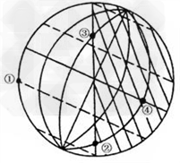 (3)当出现乙图所示太阳光照情况时,地球位于甲图所示公转轨道的___________ 点。此时,太阳光直射的纬度是______________________;①②③④四点此日正午太阳高度最小的是_________________。