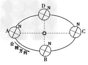 (1)甲图中A、B、C、D四个地球公转位置,是夏至的是______________________。
