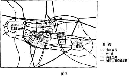 4、综合题  读“我国某城市发展变化图”,回答下列问题。