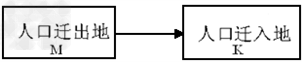 1.若此图表示第二次世界大战后的世界人口迁移主要方向,则该图可能表示: [?] A.从欧洲迁移到非洲? B.从北美迁移到拉美 C.从亚洲迁移到拉美? D.从拉美迁移到北美 2.下列因素中有利于人口从M地迁到K地的因素是: [?] A.K地有较高的工资收入? B.严格的户籍管理 C.M地教育较发达? D.M地出生率高 3.15-16世纪,欧洲进行殖民主义扩张,有7000多万人迁移到美洲和大洋洲地区,这些人口迁移所起的客观作用主要有: [?] A.开发了新大陆,传播了工业文明? B.延缓了美洲和大洋洲的经济发展? C.加剧了人与人之间冲突? D.改善了自然环境