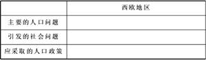 4、综合题 阅读材料,分析回答下列问题。甲、乙两图为人口金字塔图根据材料判断:欧洲西部大部分国家人口年龄结构符合______图人口金字塔。并运用地理知识完成下表问题。