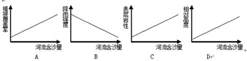 3、单选题 能正确反映河流含沙量与植被覆盖率、降雨强度、表层岩性和相对高度关系的是